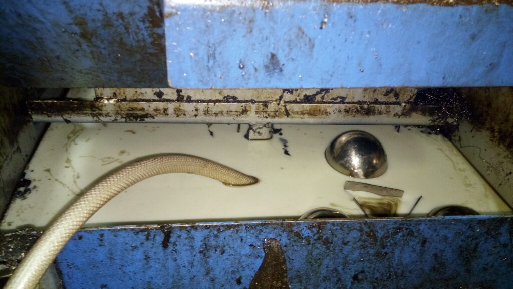 oil) along with the swarf from the machine sump just like a vacuum cleaner with more power.